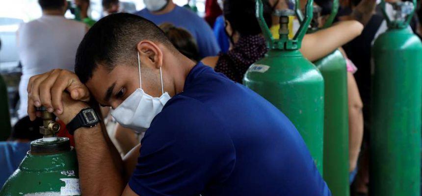 Centenas de brasileiros na capital fizeram a peregrinação em busca de oxigênio para cuidar de seus familiares em casa devido ao desastre dos hospitais, alguns dos quais até deixaram de receber novos pacientes.